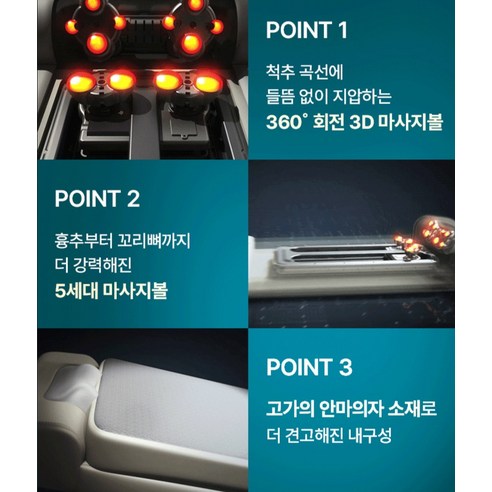 게다가 3단 접이식 구조로 설계되어 있어서 사용하지 않을 때는 깔끔하게 접어서 보관할 수 있다는 게 정말 큰 장점이에요. 거실 한복판을 차지하던 덩치 큰 안마기들과는 차원이 다른 세련된 공간 활용을 보여주거든요. 소재 역시 피부에 닿았을 때 부드럽고 쾌적한 고급 원단을 사용해 브랜드의 세심한 배려가 느껴진다고 하더라고요.